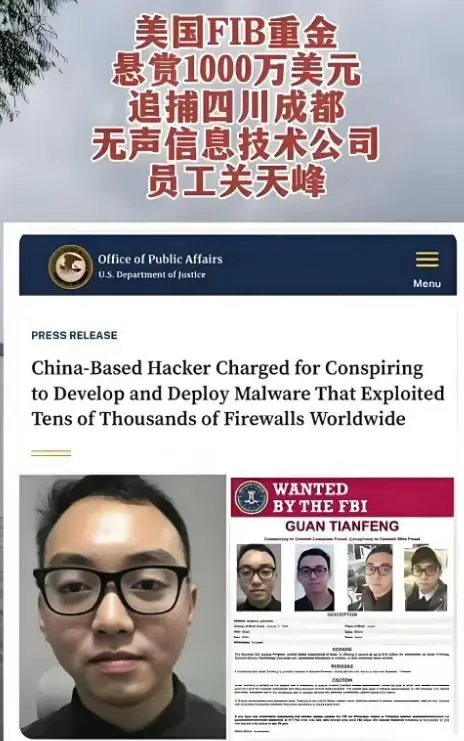2024年12月,一则震惊全球的通缉令发布,美国政府悬赏1000万美元,通缉一名来自中国四川的青年——关天峰。